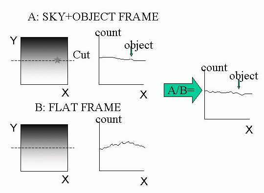 flat frames. One subtract the sky emission by using close sky emission