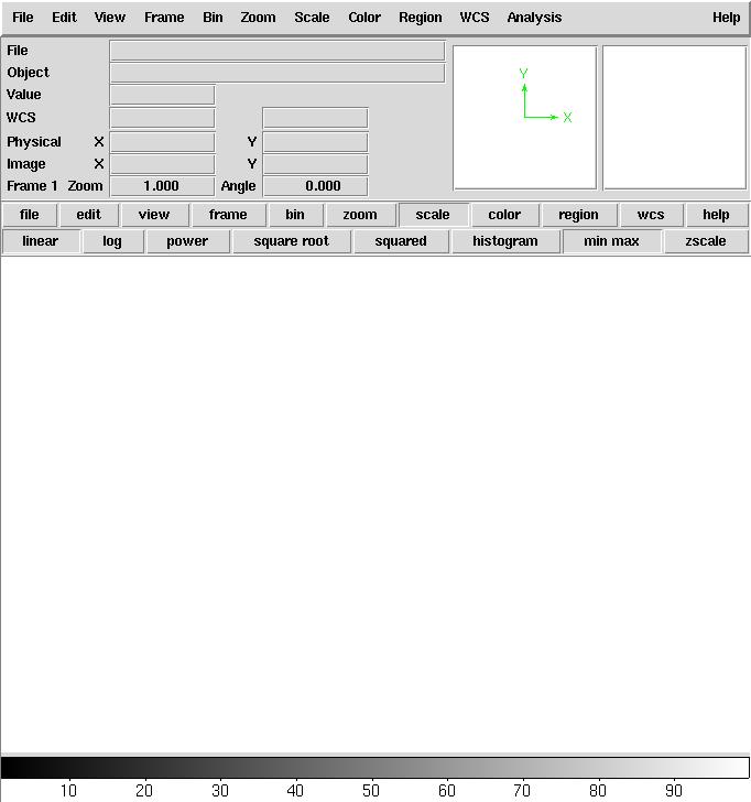 1. saoimage ds9 について FITS 画像を表示するためのブラウザとして ds9 を使用してみよう。 コマンドラインから $ ds9 test.fits & と入力すれば、ウィンドウが立ち上がり、test.fits が表示される。 まず、画像を見やすくするために、例えば Scale zscale とするとよい。ds9 の中央に2段のボタンが並んでいるが、まず上段にある Scale を押す(マウスの左ボタンでクリックする)と 下段のボタンが Scale のメニューに切り替わるので、 下段一番右の zscale を押す。 その他の機能として、 Zoom +,- で画像の拡大、縮小 を良く使う。 画像上でマウスの中ボタンをクリックすると、 クリックした場所が真ん中にくる ※この辺りの操作は ds9 のバージョンごとにころころ変わるのだが、 ここでは ds9 5.0 について解説している。 なお、これらの操作は一番上のメニューから選択して実行することもできる。 画像上でマウスの右ボタンでドラッグすると、画像コントラストの微調整が できる 他にもいろいろな機能がある。 メニューから help を押してみるといろいろ説明されているので試してみよう。