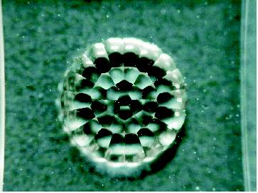 The modulated light intensity signal is sampled at each sub-aperture of a microlens array and fed through optical fibers to photon-counting avalanche photodiode (APD) modules. The present Subaru AO has 36 sub-apertures as shown below.