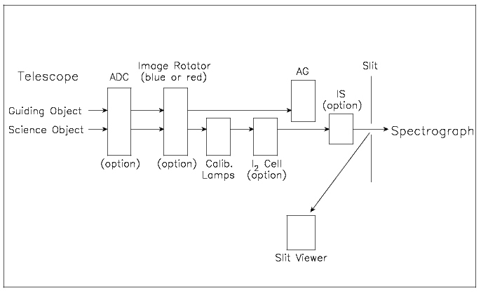 In order to control the position angle of the slit image, two image rotators for blue and red regions are mounted in front of the slit. The direction of slit image is not essential for the observation of point sources, but the image rotator can be useful for observation of objects with large atmospheric dispersion.