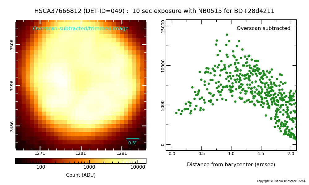 CAUTION: DO NOT USE bias/dark frames taken immediately after/before turning on/off the CCDs every observing night for detector health check because those data are not science grade. - In addition, basically, a spectrophotometric standard star is imaged before or after science observations with a NB/IB filter at least once in a night (see also this page).