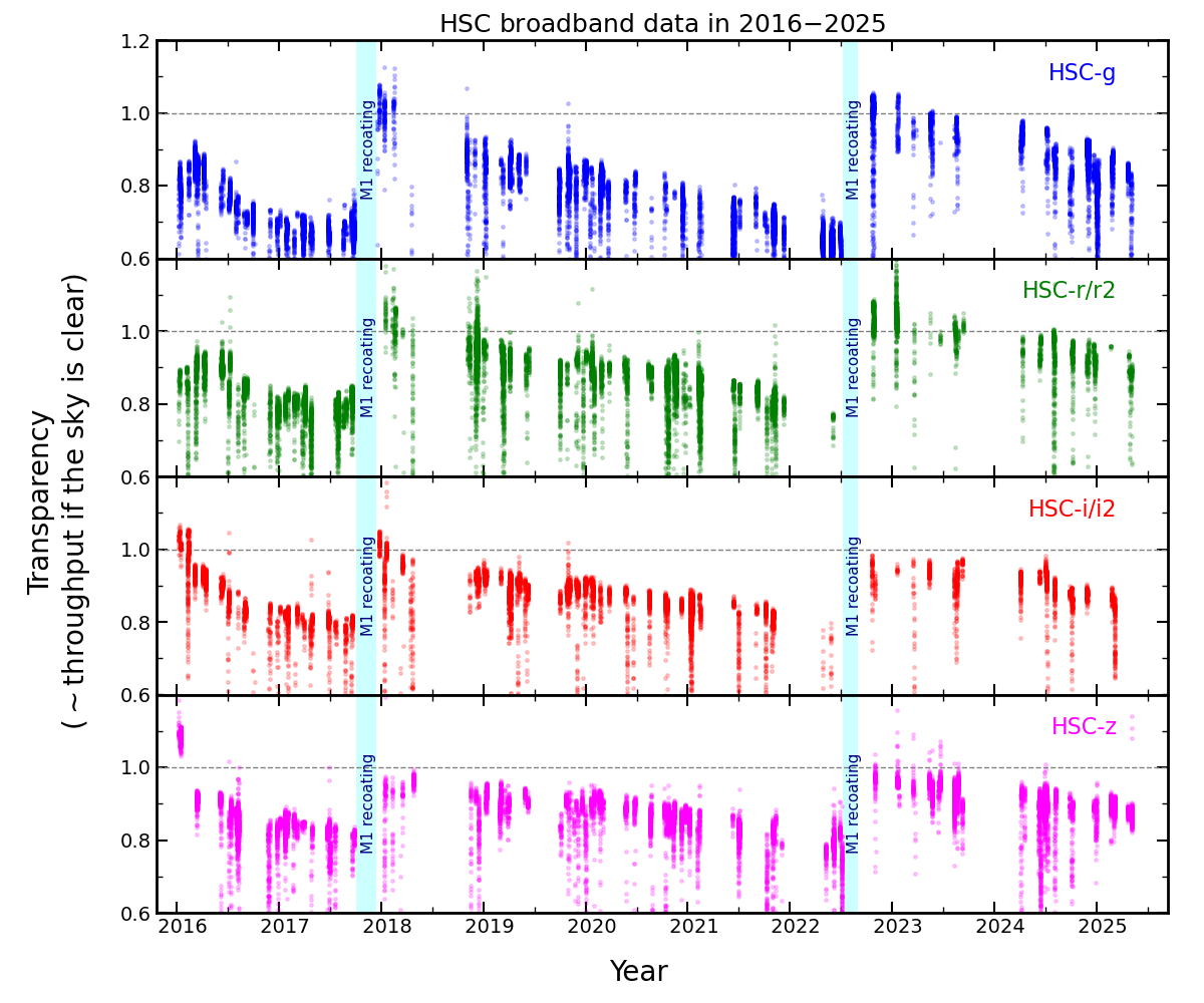 See here for reflectivity of Subaru Telescope's primary mirror.