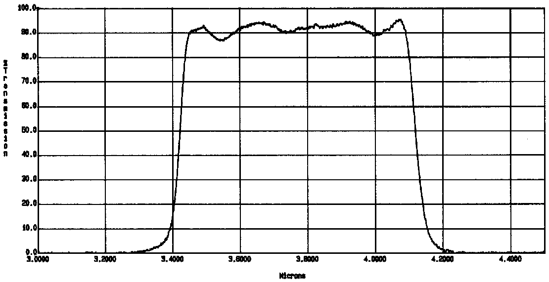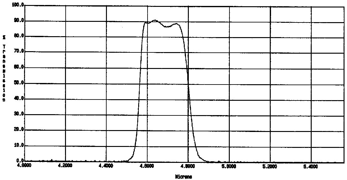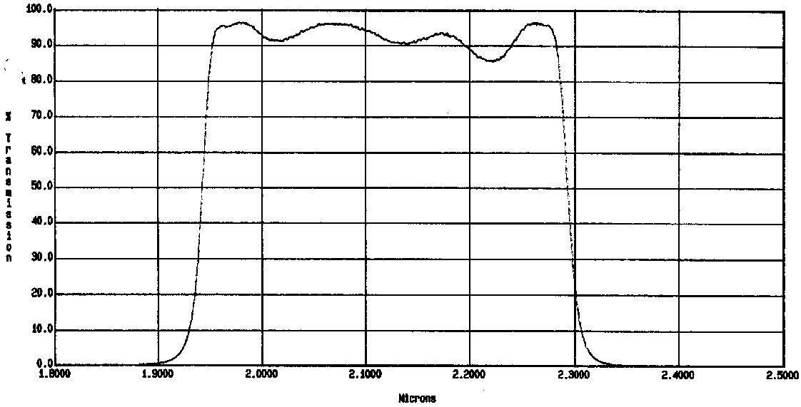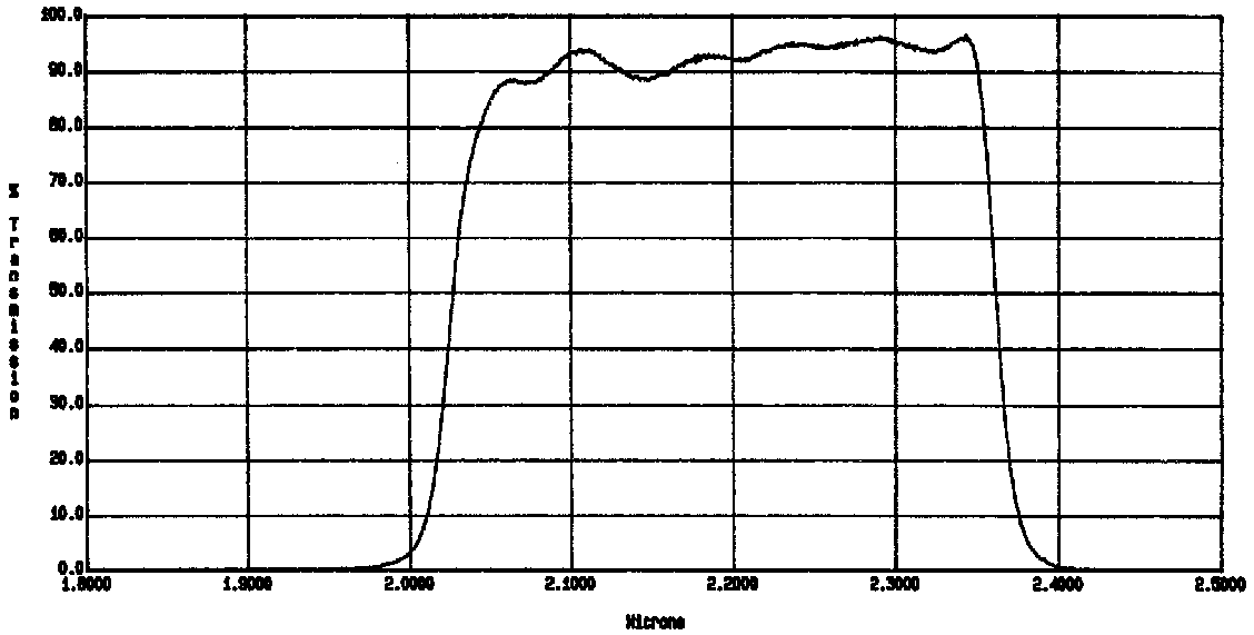 (1)Transmittance at room temperature and AOI=0 deg. The estimated wavelength shift is -2.86 nm when installed into IRCS (cooled, tilted by 5 deg).