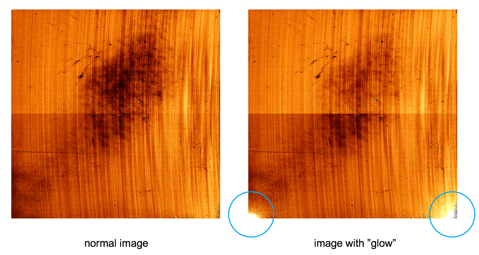 An artificial "glow" was appearing in the corner of either camera array or spectrograph array. One of the readout boards was the cause of this "glow". Although it was difficult to remove this glow from both CAM and SPG arrays due to the lack of healthy boards, this issue is now solved. Therefore both CAM and SPG arrays can be used for science purposes in a single program.