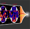 3) VLAによる電波観測マップ(周波数1.4GHz)+クローズアップ 全体画像 (1.4MB) クローズアップ画像 (155KB) 画像の説明 |