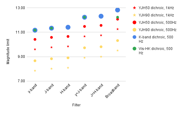 Magnitude limits listed in this section are for the AO correction to deliver 0.1 arcsec FWHM in median conditions.