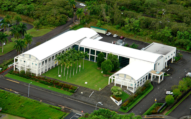 The Hilo Base Facility for the Subaru Telescope is located in Hilo, the eastern side of the Island of Hawai‘i. About 100 members of staff are working at the telescope. Their nationalities are diverse, hailing from Hawai‘i, Japan, the mainland of the U.S.A., and France. The office houses research rooms, an administration room, laboratories, computing facilities, a remote-control room for the telescope, and a library.