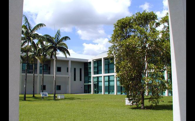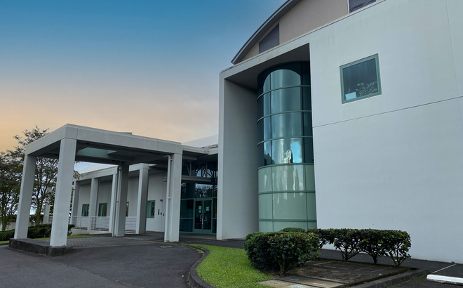 ハワイ島東岸のヒロにあるオフィスです。地元の方をはじめ、日本人、アメリカ人、フランス人など、いろいろな国出身の100人あまりの人々がはたらいています。オフィスには、研究室や事務室、実験室、計算機室、すばる望遠鏡のリモートコントロール室、図書室などがあります。