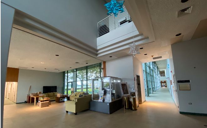 マウナケアの中腹、標高約2,800mにある施設です。ここからさらに上に登った標高約4,200mの山頂付近にある天文台郡ではたらく人たちは、ここにしばらく滞在して、高地に体をならします。宿泊棟や食堂、観測の準備、打合せ、データ解析を行うための各天文台のオフィスがある他、休憩時間をすごすための娯楽設備もあります。