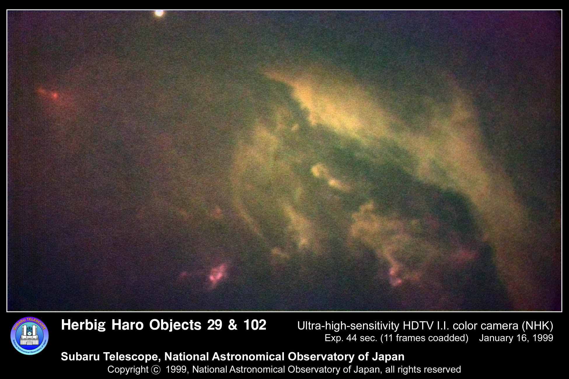 Distance : 1500 Light years Constellation : Taurus Detail : There are protostars inside the dark nebula with jets of material flowing out from their rotational poles. |