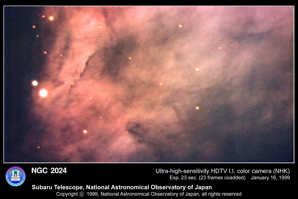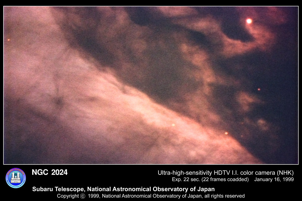 Distance : 1304 Light years Constellation : Orion Detail : Material for star formation is found in the dark regions of this image. The red regions of this image contain excited hydrogen. |