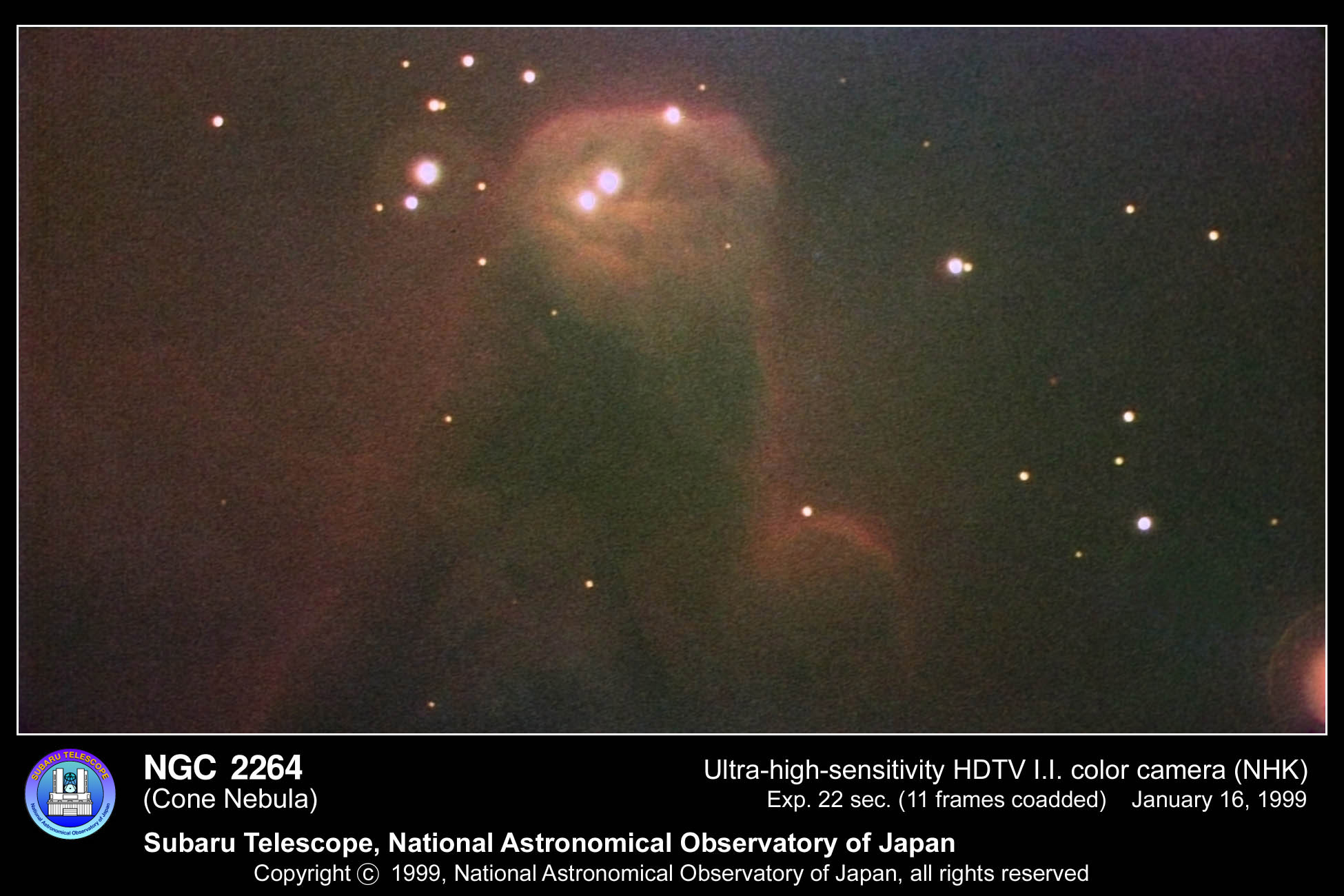 Distance : 2600 Light years Constellation : Monoceros Detail : The dark molecular cloud blocks the light from the stars behind it creating a silhouette that looks like a cone. Stars are found to form in dark molecular cloud like the cone nebula. |