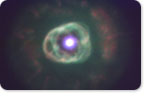 Distance : 2930 Light years Constellation : Puppis Detail : Oxygen and hydrogen gas come from a dying star in the middle of the nebula. The gas is bombarded by radiation from the dying star causing the oxygen to glow green and the hydrogen glow red. |