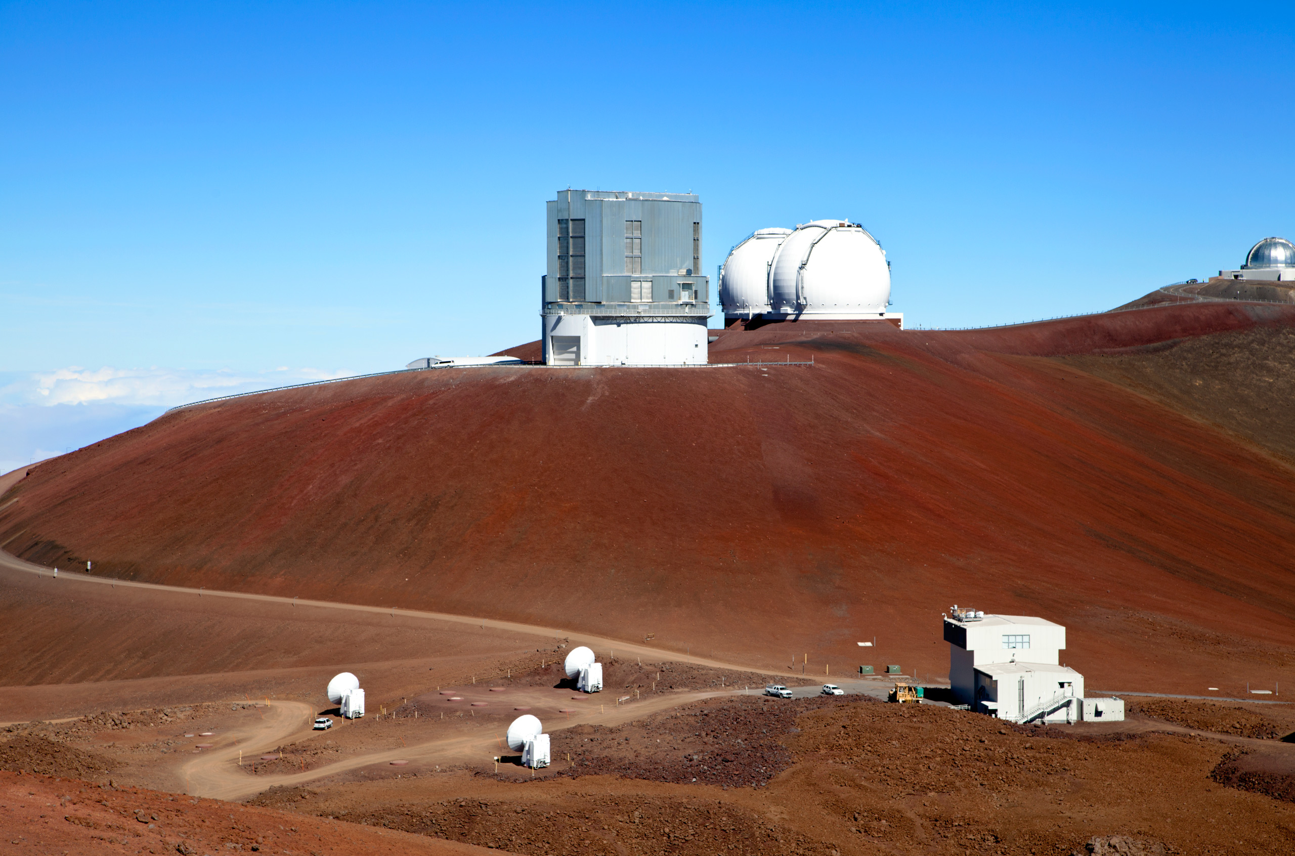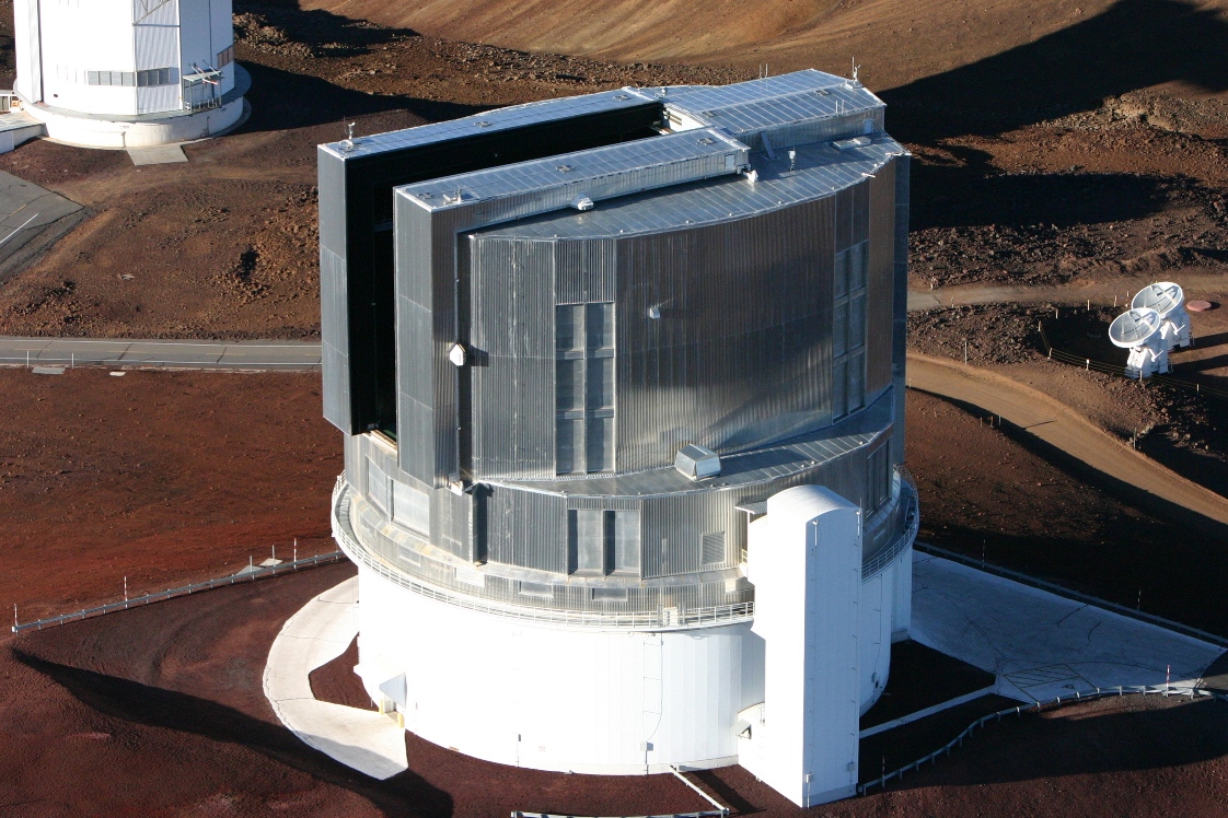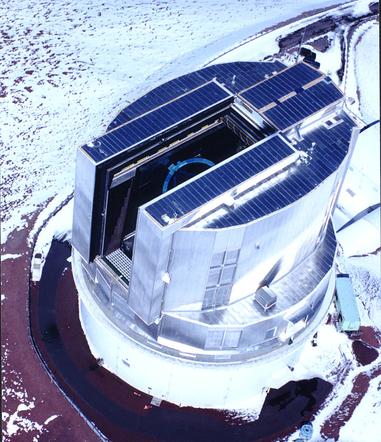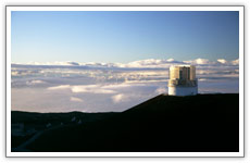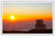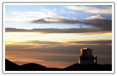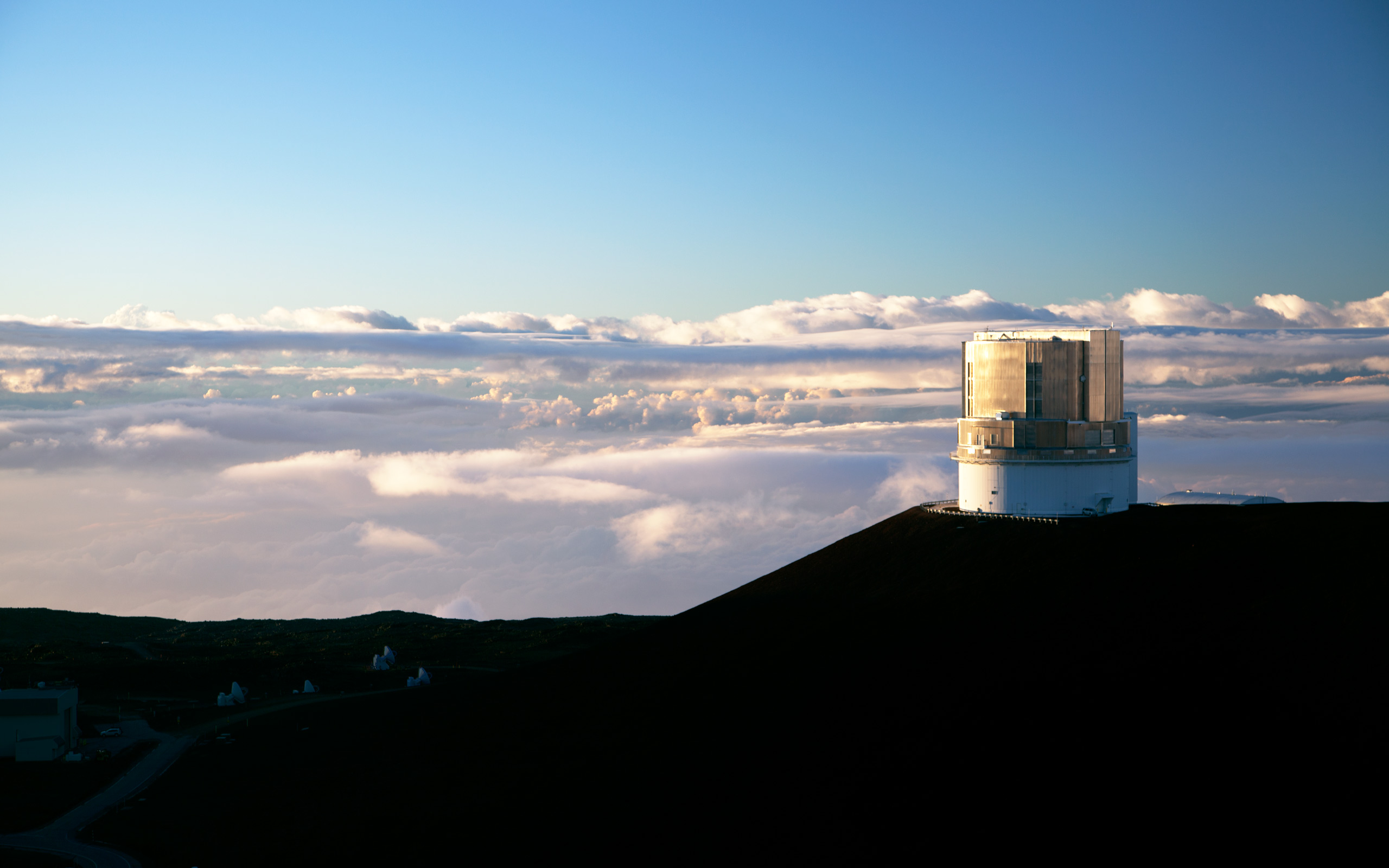 Subaru Telescope under the golden sky of sunset, ready for observations