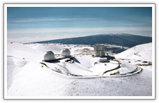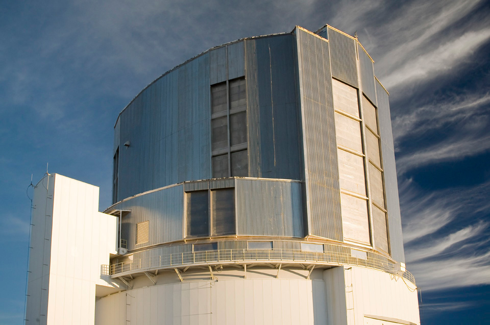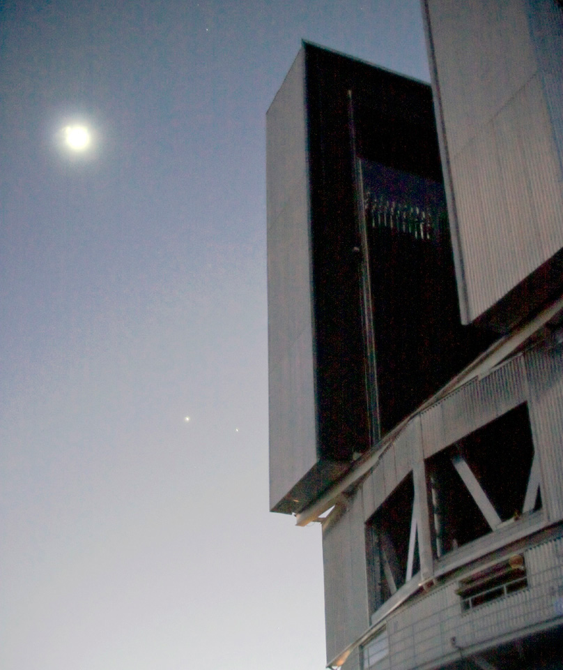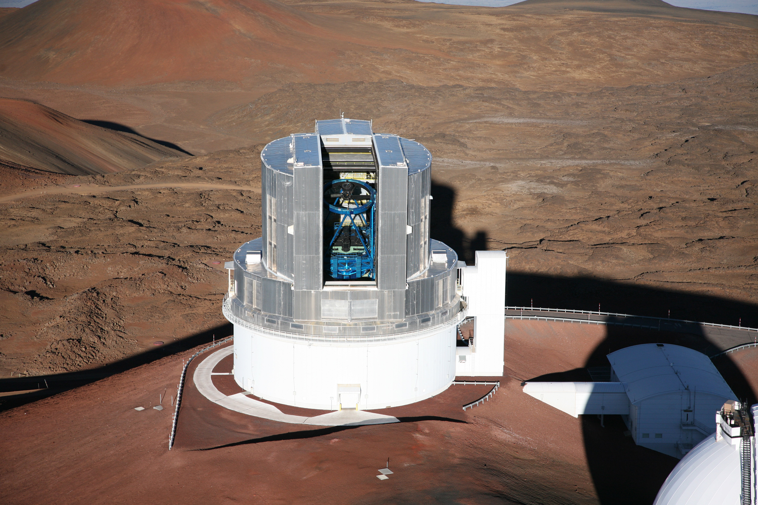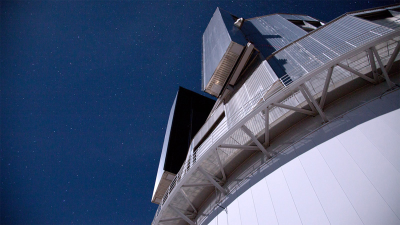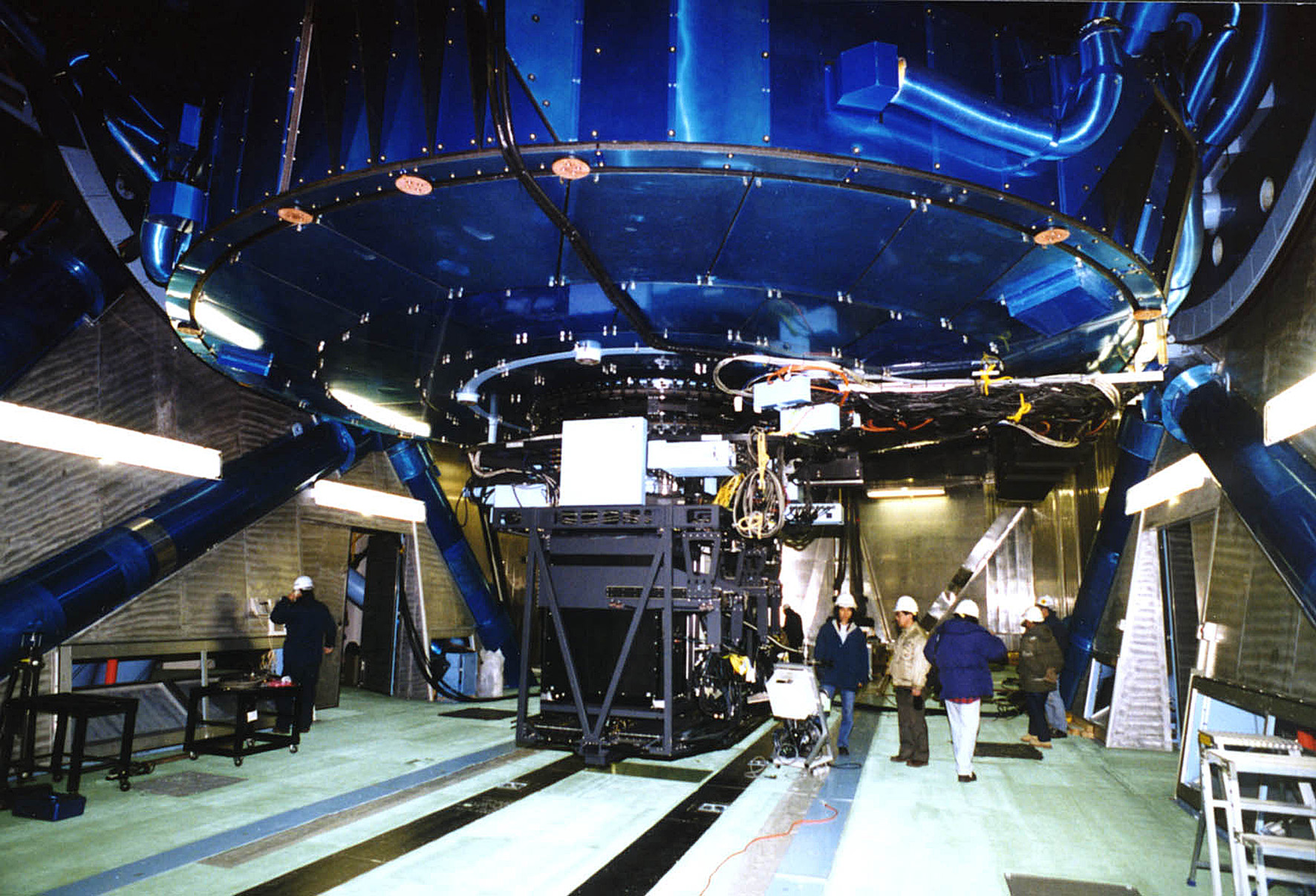 Subaru Telescope under the golden sky of sunset, ready for observations
