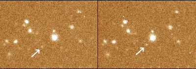 2001DR106 の画像。左:世界時2001年2月25日7時35分36秒、右:同日8時31分3秒 |