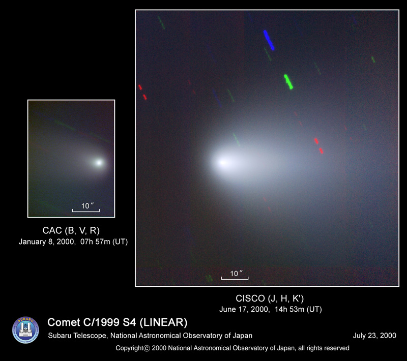 参考: リニア彗星 (C/1999 S4) は、HDS による観測から約一ヶ月後に消失していった特殊な彗星。その様子は、国立天文台三鷹キャンパスにある口径 50cm 社会教育用公開望遠鏡による連続モニター観測で捉えられた。