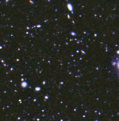 http://www.naoj.org/Pressrelease/2003/03/19/j_index.html その後の観測により、さらに7個の、同じくらい遠くにある銀河を見つけました。その内の3個は、前回見つかった最も遠い銀河よりも、さらに遠くにあることがわかりました (左図)。 |
