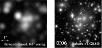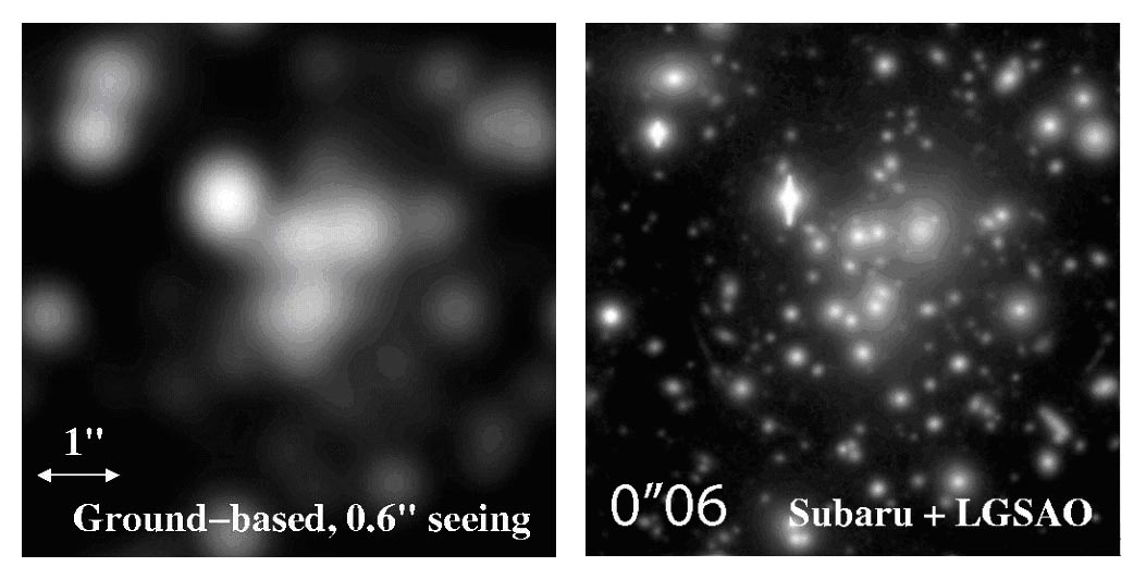 6. Comparison of the image quality: Image without LGSAO (left) and with LGSAO (right) (Larger Image). |