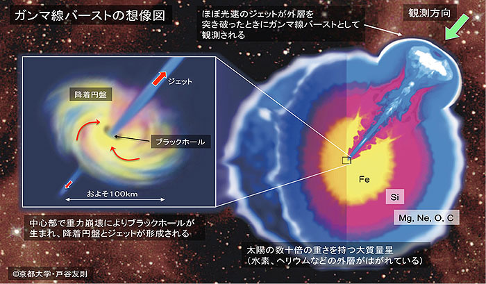 図1: ガンマ線バーストの想像図。(クレジット: 京都大学) |