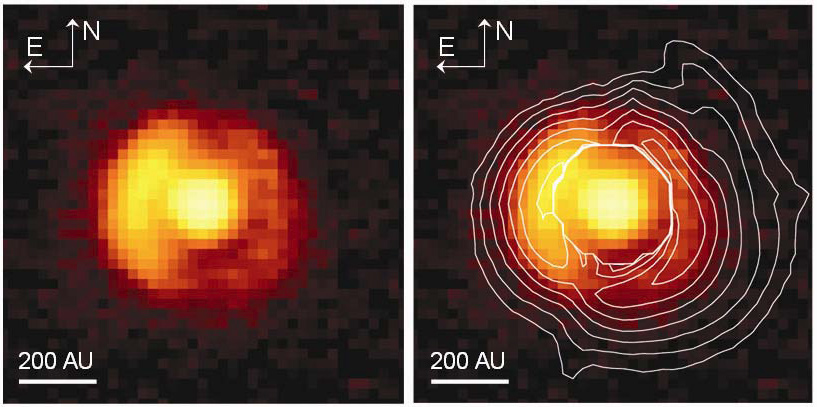 Another set of observations made by researchers from the University of Tokyo, Japan Aerospace Exploration Agency (JAXA), NAOJ/Sokendai,and Ibaraki University focused on the protoplanetary disk in mid-infrared wavelengths of 18.8 and 24.5 microns using Subaru's Cooled Mid-Infrared Camera and Spectrograph (COMICS). The images, with spatial resolutions of 0.5 arcseconds and 0.6 arcseconds, show radiation emitted by the disk out to beyond 100 astronomical units, or three times the distance between Neptune and the Sun. This is the first time that a protoplanetary disk has been detected in the mid-infrared to such a distance.