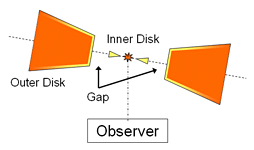 Figure 4: A diagram of the structure of the HD142527's protoplanetary disk. There is an inner disk and an outer disk and a gap between them. (Enlarge)