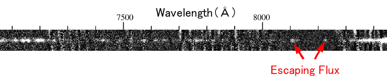 Figure 3: The CCD image of the spectrum. The fact that light is detected between 800 and 830 nanometers indicates that much of the hydrogen between Earth and the quasar must be ionized. (Enlarge)