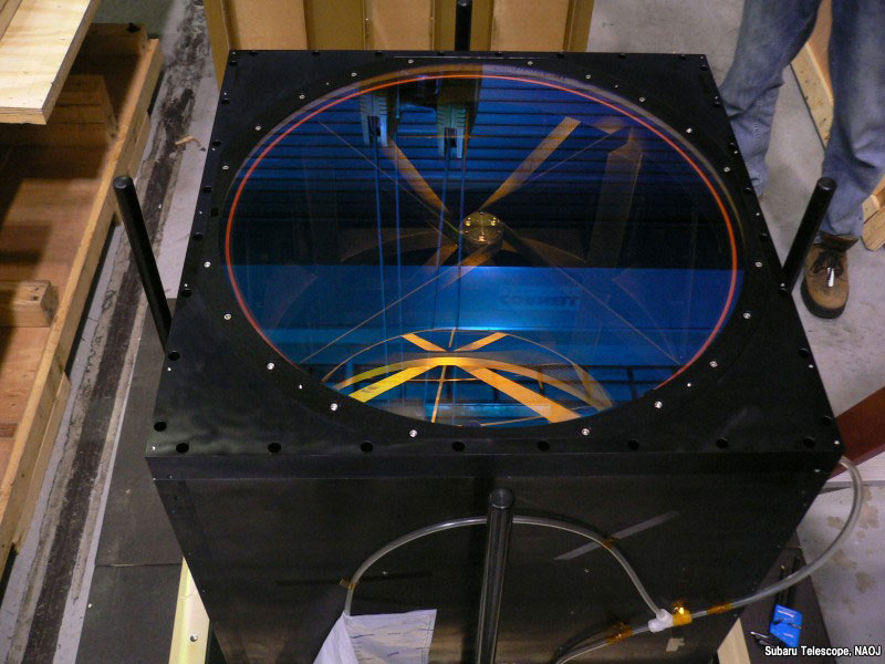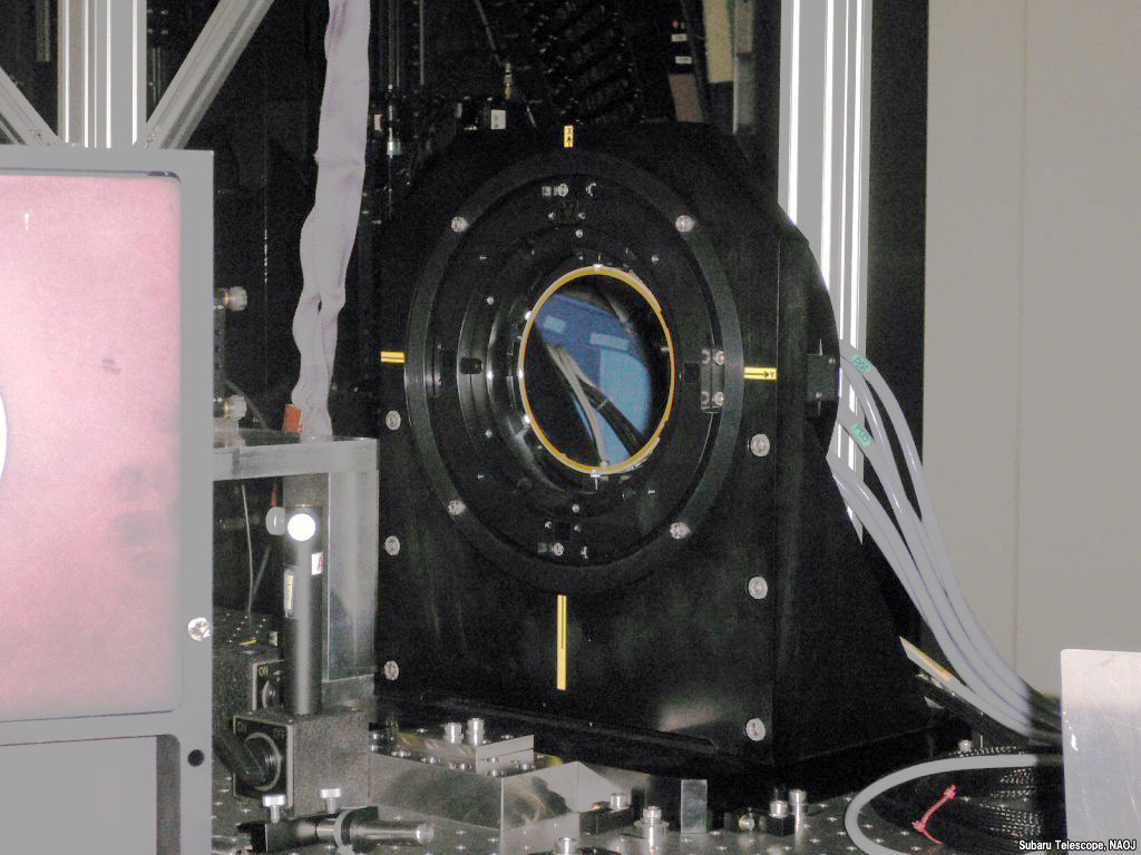 IRCS camera (the blue box) installed at one of Subaru's Nasmyth foci. Both