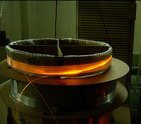 Note 3: The laser guide star system was designed to make more of the sky available to the adaptive optics system. Dr. Yutaka Hayano led the development and production of the system. Subaru's laser guide star system uses a high-output laser (tuned to the sodium D2 line at 589 nanometers) to excite sodium atoms in the sodium layer of Earth's atmosphere, about 90 kilometers in altitude. The excited sodium atoms then release 589 nanometer photons and act as an artificial star for measuring the atmospheric distortion of light. With this instrument, any part of the sky overhead can be observed with the adaptive optics system. For example, distant galaxies that are far away on the sky from any bright star can now be studied in detail. The sodium laser for the system was developed in conjunction with researchers from the Solid State Optical Devices Research Unit of RIKEN led by Satoshi Wada. The laser is produced using a special optical crystal to combine a 1319 nanometer Nd:YAG laser with a 1064 nanometer Nd:YAG laser to produce a laser that matches the wavelength of the sodium D2 line exactly. (See Note 7) The 589 nanometer laser produced in the laser room is sent to the sky from a 50-cm-diameter laser launching telescope (See Note 8) attached to the top of the Subaru telescope. A new type of optical fiber developed in Japan called photonic crystal fiber (See Note 9) was used to send the high-power laser light from the laser room to the laser launching telescope with minimal loss.