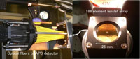 Note 4: Light from the guide star is divided into 188 parts using an order-made 188-part lenslet array (right) and is sent to 188 avalanche photo diodes using 188 optical fibers. This critical component of the wavefront sensor required precise alignment.