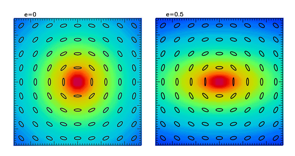 In addition to the promise of using gravitational lensing for exploring the nature of dark matter, this research contributes to the theoretical modeling of dark matter. Detailed comparisons of the team's findings with theoretical model predictions of the distribution of dark matter show that the observed degree of the flattening is in excellent agreement with theoretical expectations.