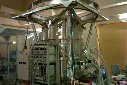 COMICS (Cooled Midinfrared Camera and Spectrometer) は冷却中間赤外線分光撮像装置です。すばる望遠鏡の第一期観測装置の中ではもっとも長い波長の中間赤外線(波長8~28マイクロメートル) により、天体の画像を撮像する観測と天体のスペクトルを調べる分光観測を行うことができます。観測装置が暖かいと赤外線を発生するため、赤外線の観測では装置そのものを冷やす必要があります。そのため、COMICS は銀色の大型魔法瓶に納められ、装置全体の温度を30~40K まで冷やしています。