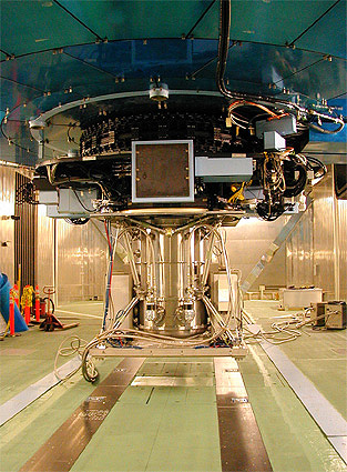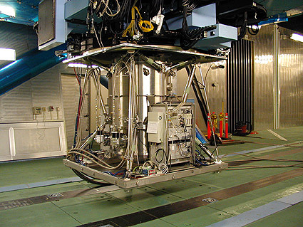 山麓施設での試験の後、山頂に運び込まれた COMICS は、すばる望遠鏡のカセグレン焦点に取りつけられました。