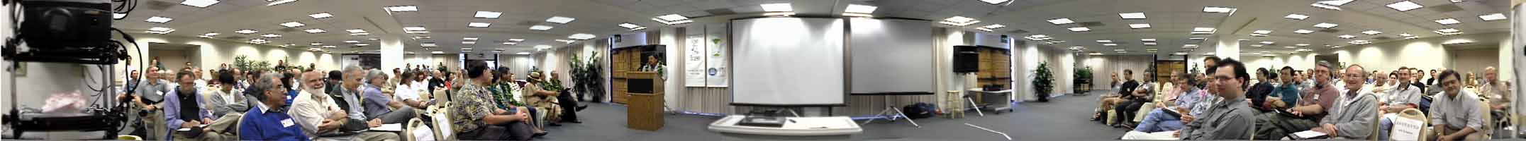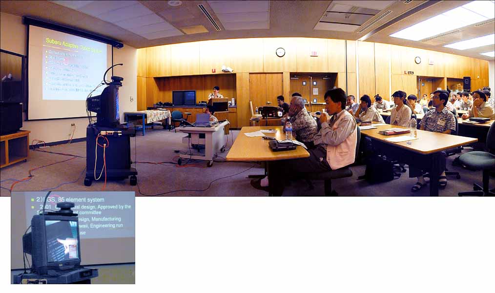 第一回目のすばる望遠鏡ユーザーズミーティングは、3月7日から9日にかけて、ハワイ島ヒロにある国立天文台ハワイ観測所の山麓施設にて行われました。この会議への参加者は、すばる望遠鏡共同利用観測の最初の期間に観測した方々のほか、ハワイ大学の研究者、望遠鏡や観測装置の試験観測期間中に観測を行った人々です。会議の最初の日は、望遠鏡の現在の状態、さらに今期やこれからの共同利用観測に関する議論がありました。続く2、3日目は、すばる望遠鏡の観測による予備的な結果について、22 名の発表者が報告をしました。その後、次期観測装置についての検討や望遠鏡の運用やサポート体制について話し合う場がありました。これらに加え、17のポスターによるプレゼンテーションも行なわれました。