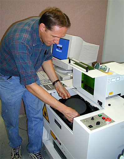 - 2. のリストを元に、ハワイ観測所のスタッフがレーザー加工装置を用いて、シート上に天体の位置に合ったスリットを空けます