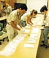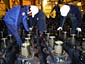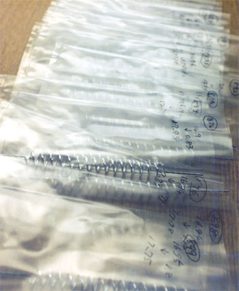 蒸着作業の5ヶ月も前から、山麓施設では蒸着で使うフィラメントの作成とその確認作業が行われました。フィラメントは、くるくると巻いた長さ約 19 センチメートルのタングステンの表面にアルミニウムを溶かしてつけたものです。一回の蒸着で使うフィラメントは、約 300 本です。