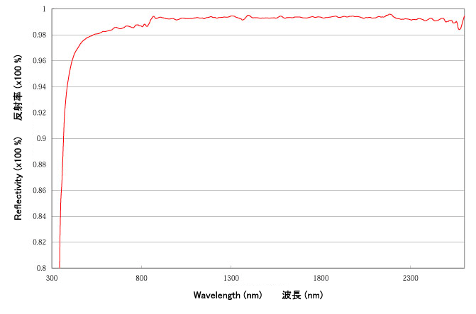 | 再メッキ後の赤外線観測用副鏡 | 副鏡と一緒に銀でメッキした 参照用ガラスの反射率 |