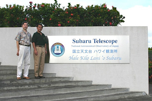 このたび、ハワイ観測所ヒロオフィスの表札が新しいデザインになりました。落ち着いたステンレスを基調とするこの表札には、すばる望遠鏡のロゴマークが左にあしらわれ、右には上から英語の「Subaru Telescope (すばる望遠鏡)」と「National Astronomical Observatory of Japan (国立天文台)」、日本語の「国立天文台 ハワイ観測所」、そしてハワイ語ですばる望遠鏡を意味する「Hale Kilo Lani `o Subaru」の各文字がレリーフにより装飾されています。このハワイ語名は、ヒロオフィスがあるハワイ大学ヒロ校のグレン・カレナ・シルバ教授 (Glenn Kalena Silva, Professor/Director of Ka Haka `Ula O Ke`elikolani, University of Hawaii at Hilo) に命名していただきました。なおヒロオフィス・ビジターギャラリー内には、総合研究大学院大学の組織紹介プレートも同時に展示されました。