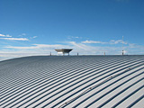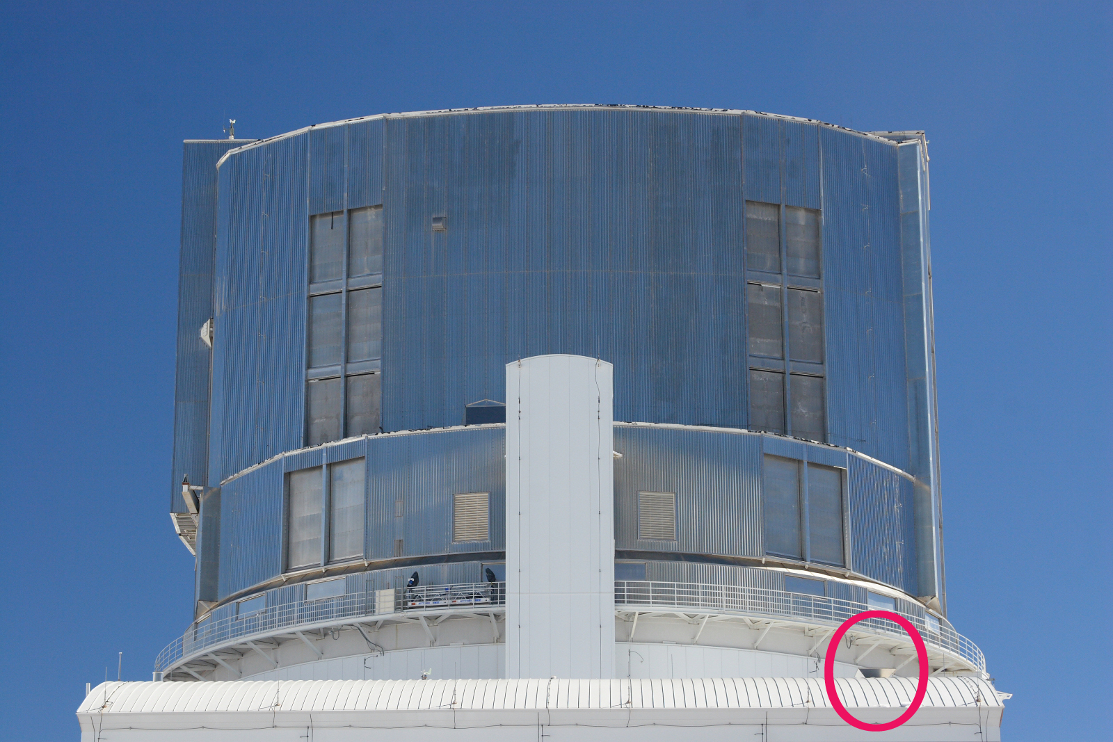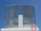 At Subaru, the SODAR system, installed in February 2008, is small, compact, and mounted on the roof of the control building immediately adjacent to the dome (see photos). The position is approximately 52 ft (16 m) below the telescope mirror, so the minimum altitude for SODAR measurement roughly corresponds to the position of the telescope mirror. During operation, the system emits a multi-tone acoustic pulse directly into the atmosphere at 10-second intervals and then registers the return signal. The frequency shift of the echo varies according to the wind speed, due to the Doppler effect, while the echo intensity varies according to the turbulence and structure. This system allows for real-time atmospheric data without any human intervention due to a pulse-coding technique and a fixed echo detection subroutine.