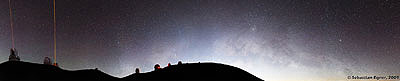 図4: (左から) JCMT、SMA、すばる望遠鏡、ケック望遠鏡 (2台)、IRTF、CFHT、ジェミニ北望遠鏡 【Photo: Sebastian Egner】 (拡大) |