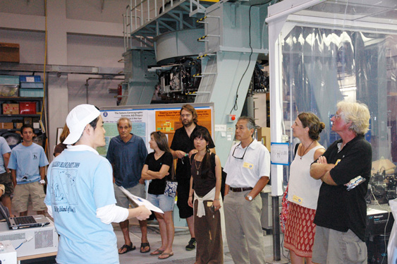 Other activities for visitors included remote observation and informational displays about Subaru. Guests had a chance to use i-CAN, a web-camera network for viewing the night skies in other parts of the world, and then discuss their remote observations with some of Subaru's telescope operators and astronomers. In honor of Subaru's 10th anniversary since the telescope's first light, the lobby was filled with images of some of Subaru's significant discoveries as well as displays of the telescope's history and operation.