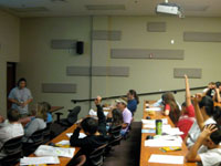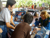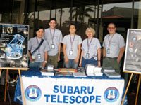 To demonstrate the meaning of a habitable zone on another planet, they challenged participants to design an alien for a specific planetary environment. This was one of several presentations that Dr. Usuda has made since 2005, when she first became involved with the event. She noted that Subaru's role was particularly successful this year and provided "great exposure to introduce the observatory to people in the community." Participation by the entire Public Information and Outreach staff allowed for greater involvement in both the workshop and display portions of the event. Subaru's display invited visitors to learn about astronomy by peering through small telescopes, receiving a poster summarizing the history of telescopes(pdf file), or finding out about Subaru’s discoveries.