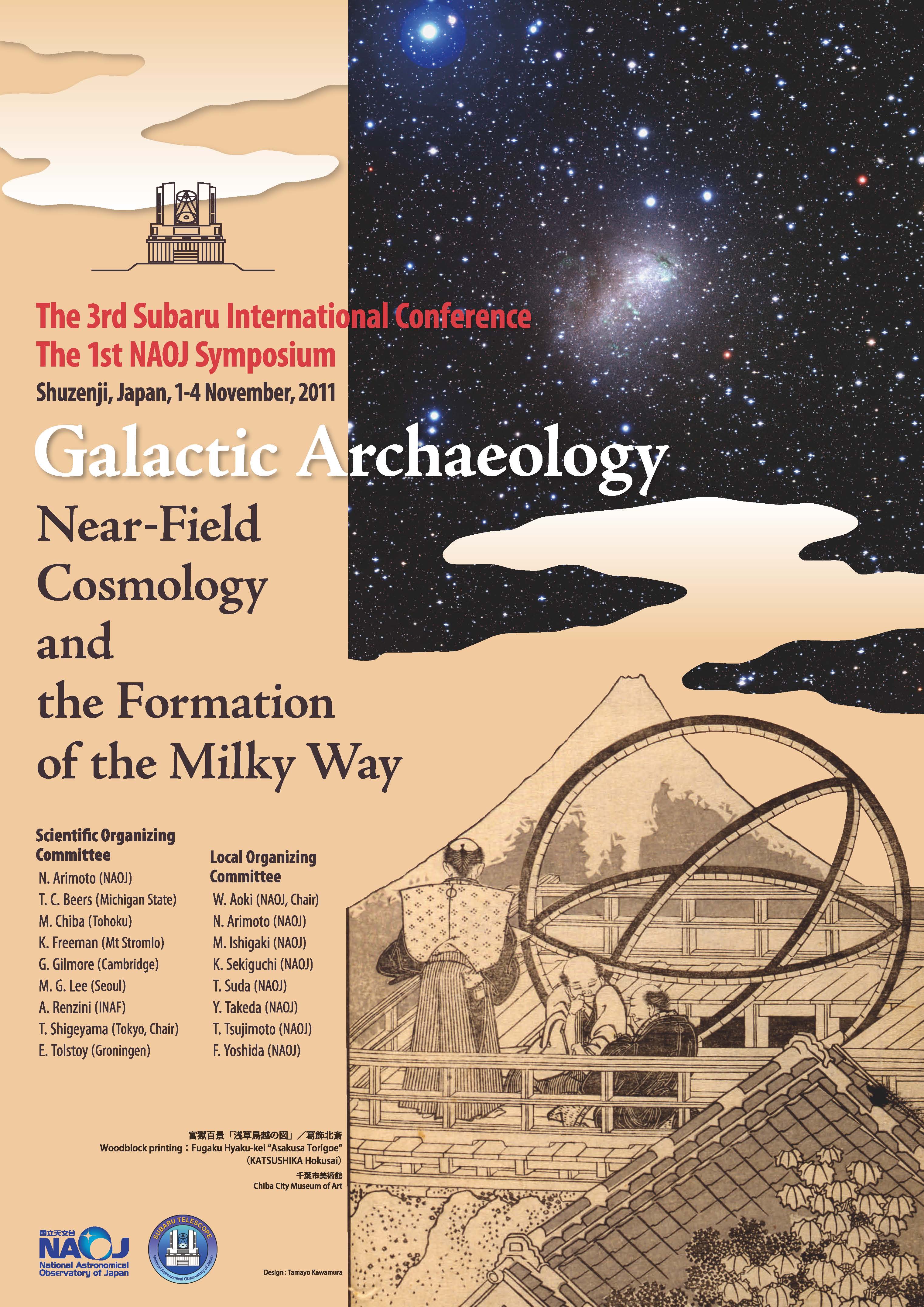 この銀河考古学にも、すばる望遠鏡による観測研究が貢献しています。最近活発になっているこの分野の研究を交流するとともに、すばる望遠鏡による研究成果を世界に発信し、今後の研究の発展をはかることを期して、第3回すばる望遠鏡国際研究集会が開催されました。この研究会は、今年度からスタートした国立天文台シンポジウムにも採択され、記念すべき第1回のシンポジウムと位置づけられました (図2)。