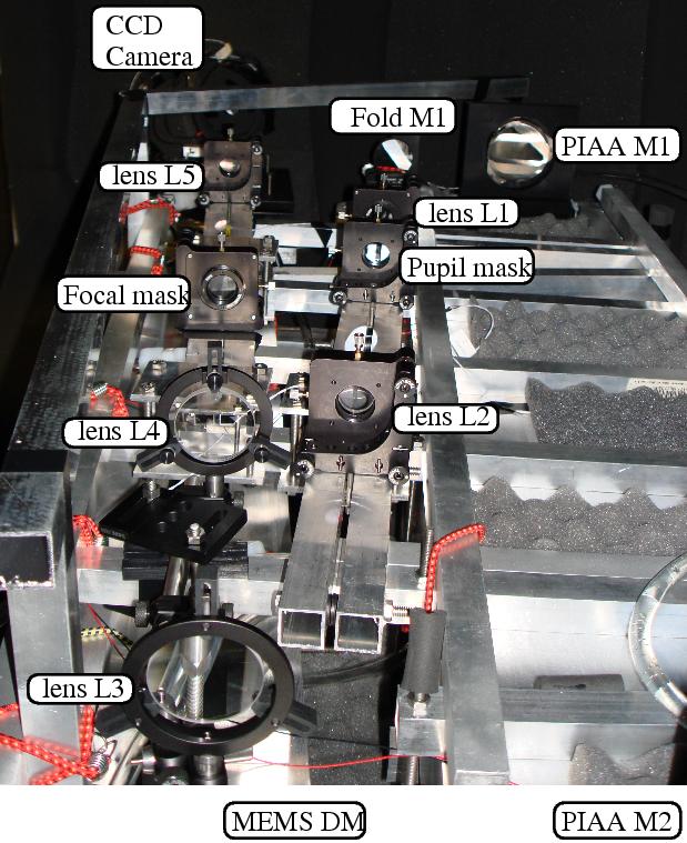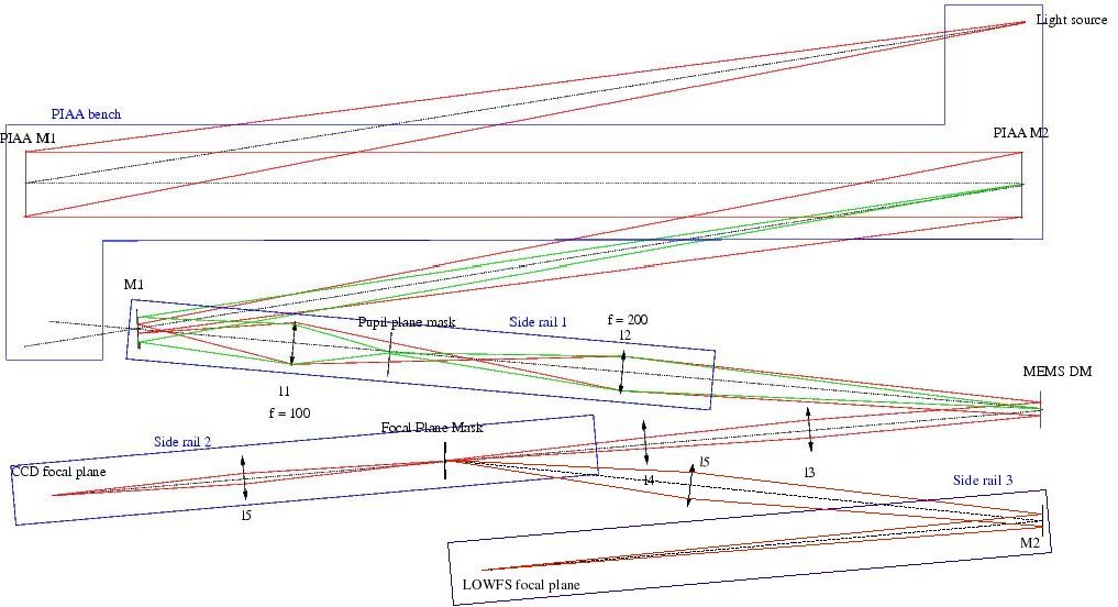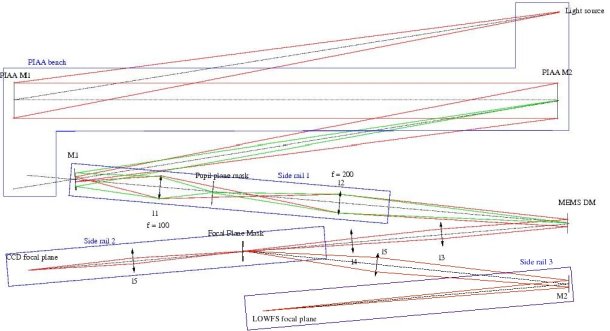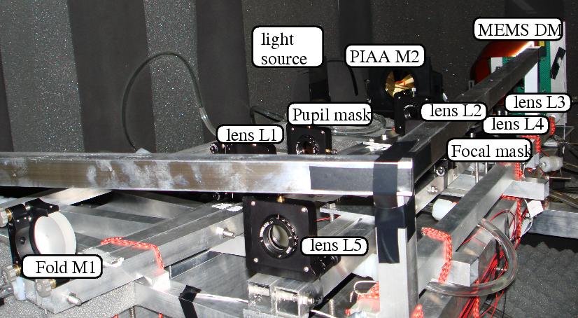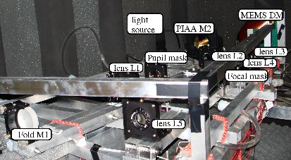 Show content only (no menu, header) Output beam from PIAA unit is F/15.213, with the pupil 1141mm before the focus. Design is optimized for mask type 1. Mask type 1 accepts pupil diameter 5.93mm, and the illuminated pupil after the mask is 0.8722 x 5.93mm = 5.17mm The ILLUMINATED pupil size on DM should be 9.5mm. For Mask 1, the pupil size on the DM is then 10.9mm.