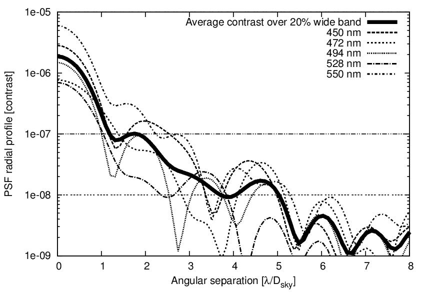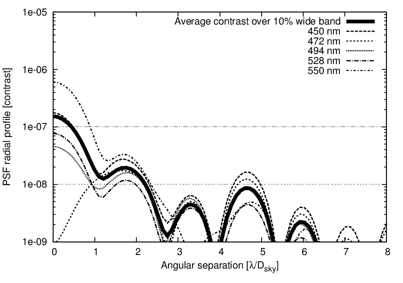 4. Polychromatic design: 10% wide band centered around 0.5 um