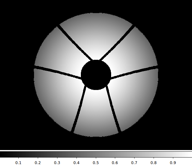 Design parameters (see PIAACMC paper for explanation) : b/2 = 0.9, a/2 = 0.925.