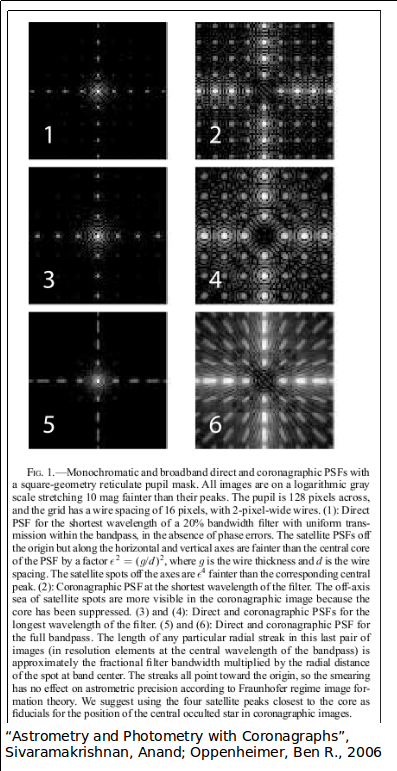 More recently, regular grid masks have been inserted in coronagraph instruments to perform astrometry. See this figure for a quick description. While the technique is optically similar to the one we propose, the goals for this technique are somewhat different (astrometry of the planet orbit instead of the star wobble), and putting the grid mask inside the instrument does not address the wide field distortion problems which our concept is aimed at calibrating.