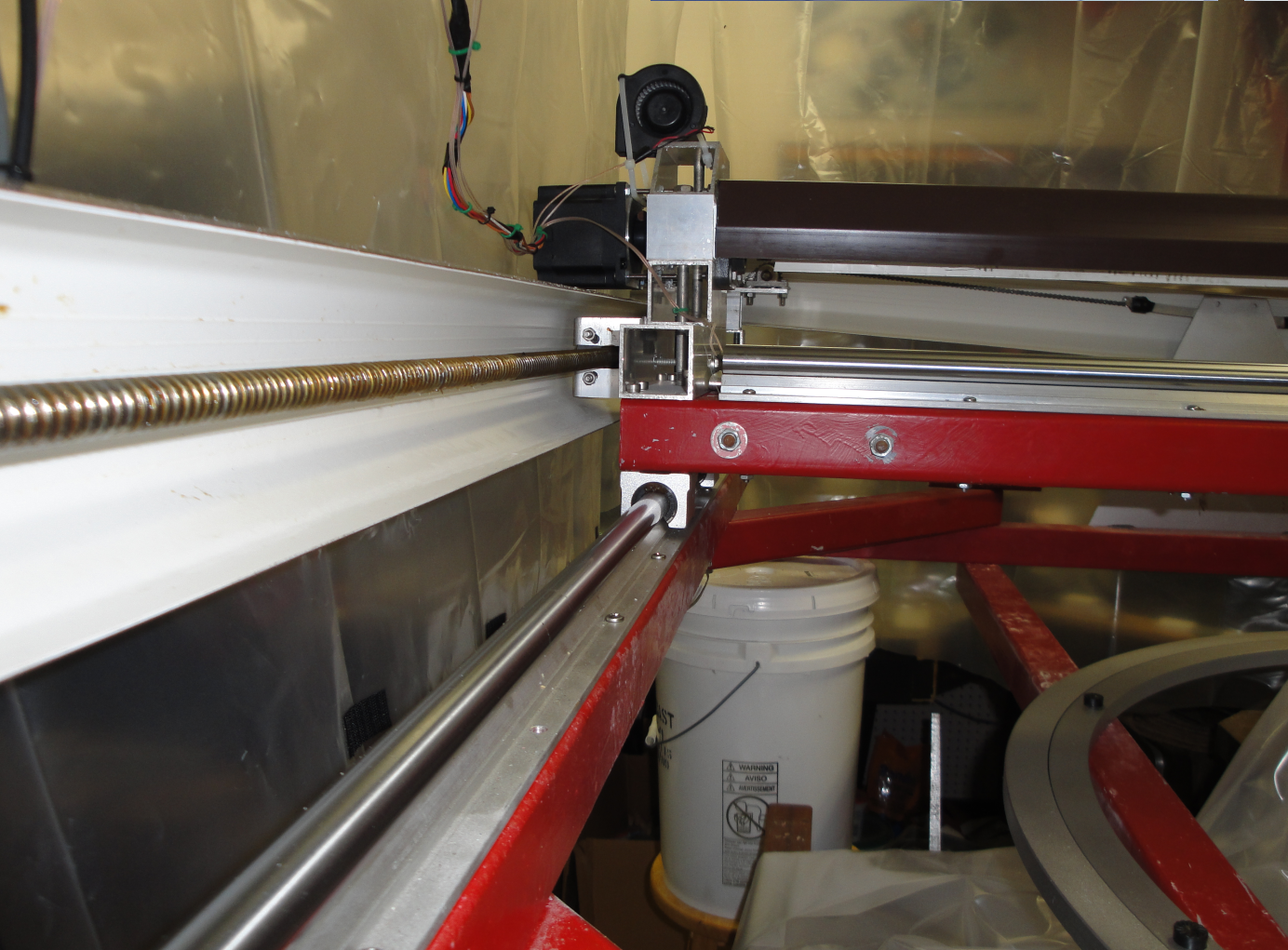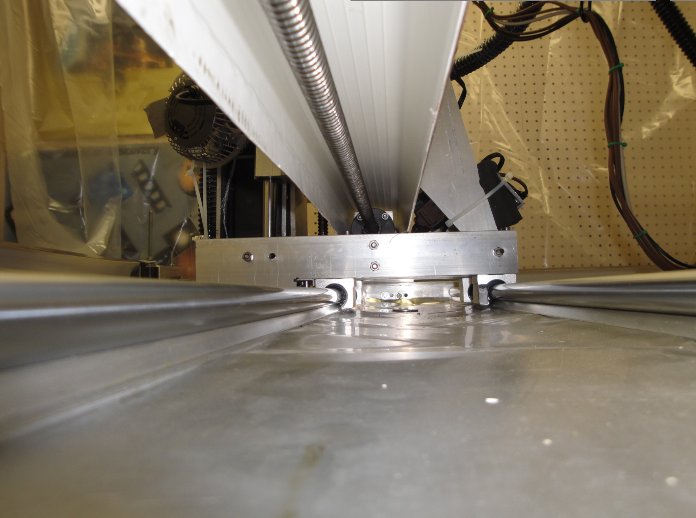 Y axis linear ball bearings (bottom) and ball screw (top).