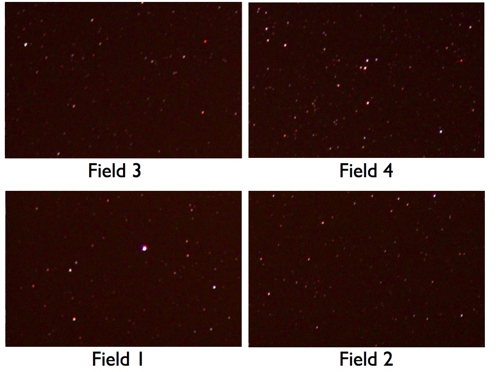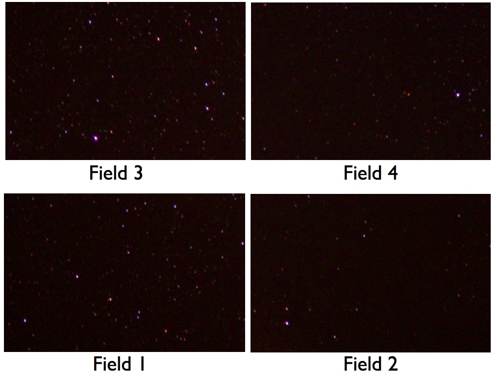 Field 2 is quite sharp but the other 3 fields are out of focus (field 1 is especially far from focus).