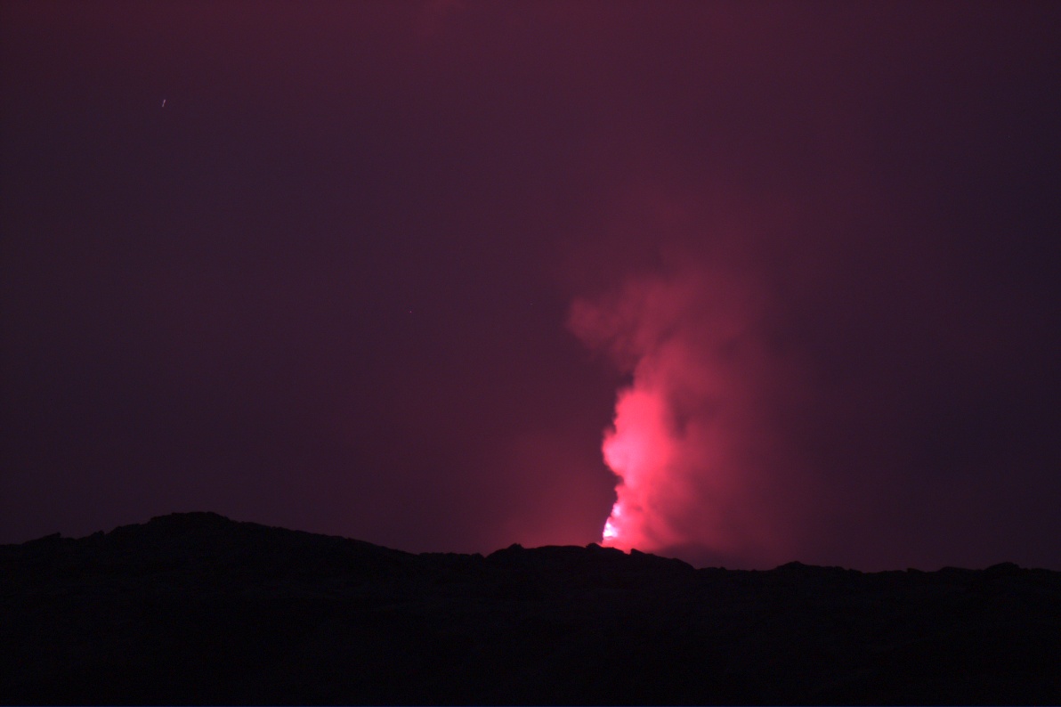 Pu'u'O'o volcano on a cloudy night (May 30, 2009)
